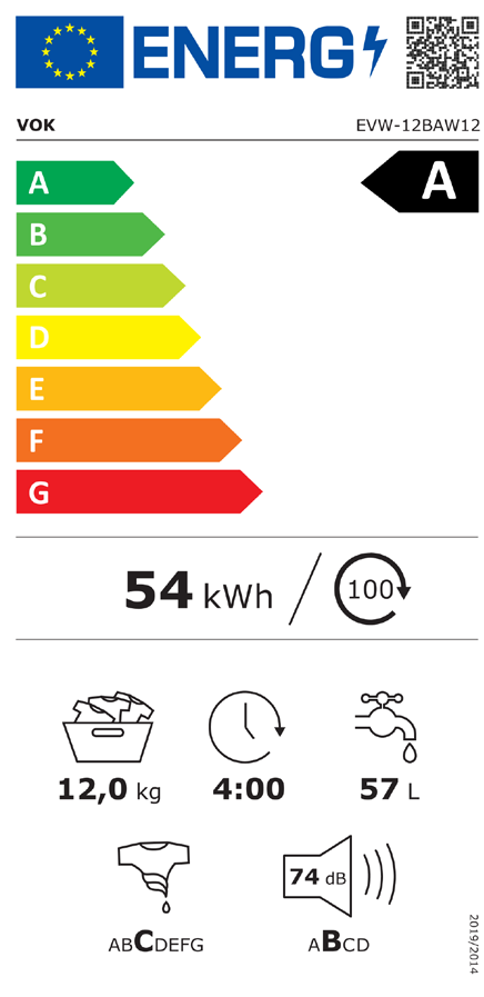 EVW-12BAW12 | Lavadora 12Kg | Blanco | Eficiencia Energética A