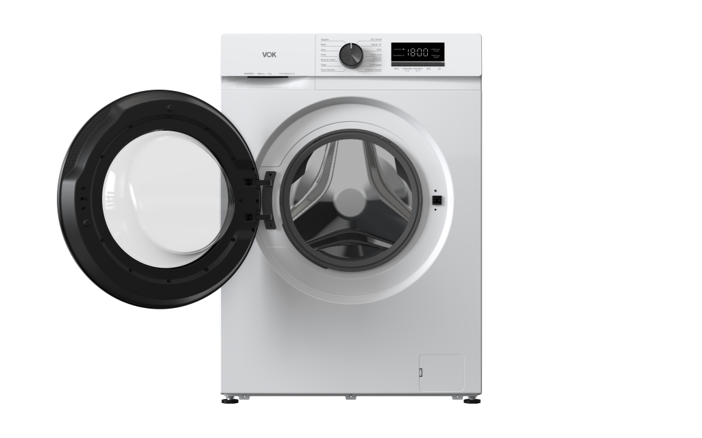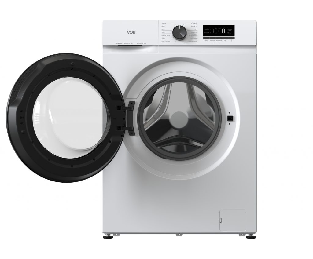 Lavadora de carga frontal EVW-8BAWL2412 con 8 kg de capacidad y motor Inverter para un lavado eficiente y estable. Incluye 14 programas de lavado, función vapor y peso inteligente para ajustar el consumo según la carga. Clasificación energética A y control electrónico con pantalla LED para un uso cómodo en el día a día.